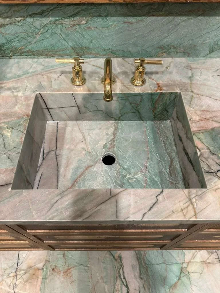 Our artisans hand-polish custom edges, including 45° miters, bullnose, eased, and shark nose finishes, for a flawless, handcrafted touch.